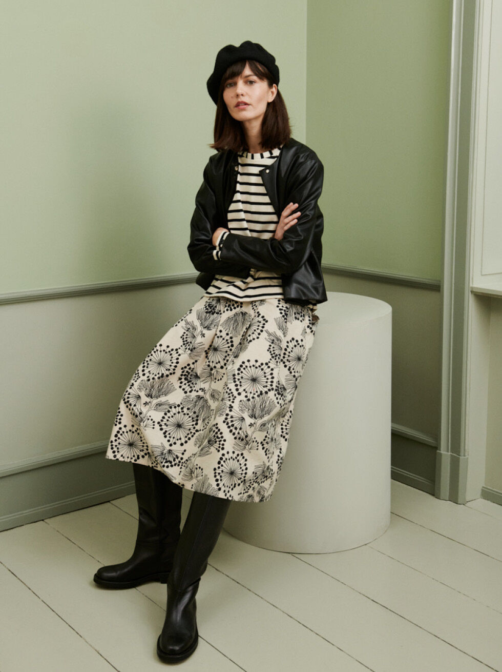 The collection features elegant new designs in vegan leather, timeless tunics, beautiful dresses, classic stripes and artistic hand-painted prints: Everything you need to meet autumn in style.