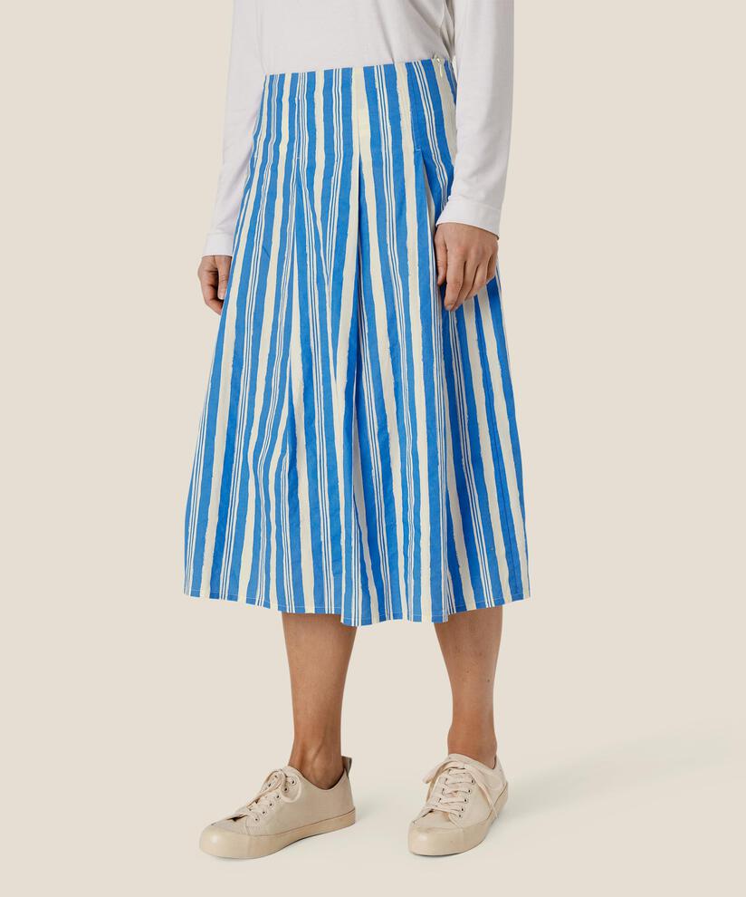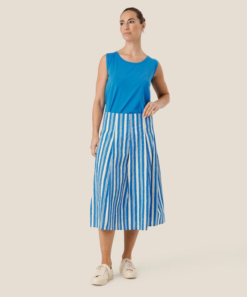 Simple stripes are both feminine and elegant. Like on this skirt, where the white and bright blue create a dynamic duo. The skirt is made from super soft cotton with plenty of pleats, so that it has a lovely, floaty drop over your body. It fastens with a zip in the side. Wear it with a simple white top for a stylish look – or go all out on the stripes with our matching shirt.