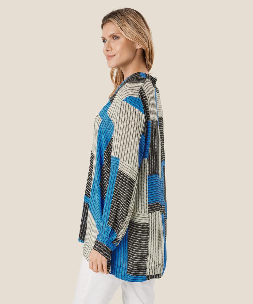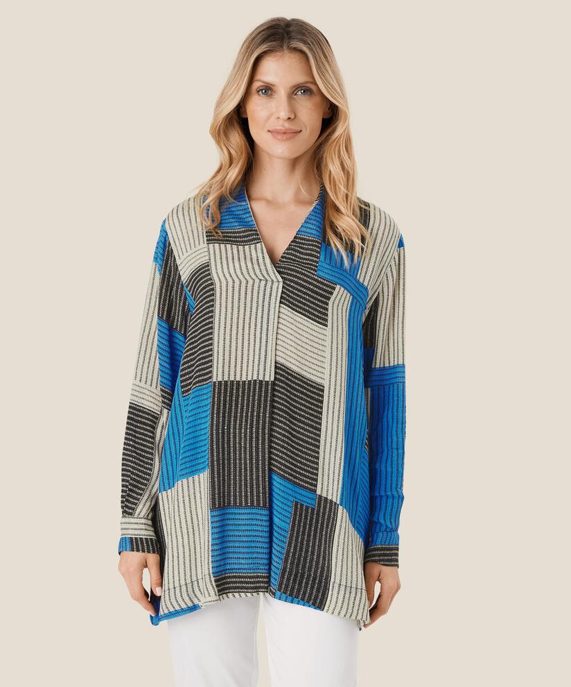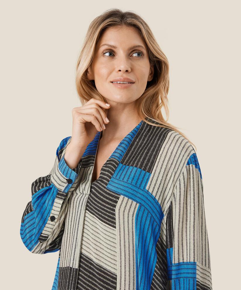 If you love prints as much as we do, you won't be able to take your eyes off the graphic pattern on this tunic. The tunic is woven in a soft viscose fabric that feels like silk and has a beautiful A-shaped cut. It also has a deep V-neck with pleats that add extra life when you move. A lovely and feminine tunic that's easy to wear. Match with a pair of fitted trousers for a simple, stylish look in an instant.